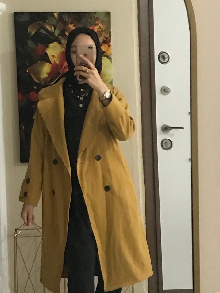Camel renk midi boy, bol kesim kadın kaban. Yumuşak ve sıcak kumaştan, uzun kollu, çift düğmeli ve kesik yaka detaylı. Günlük kullanıma uygun, salaş şıklık sunar.