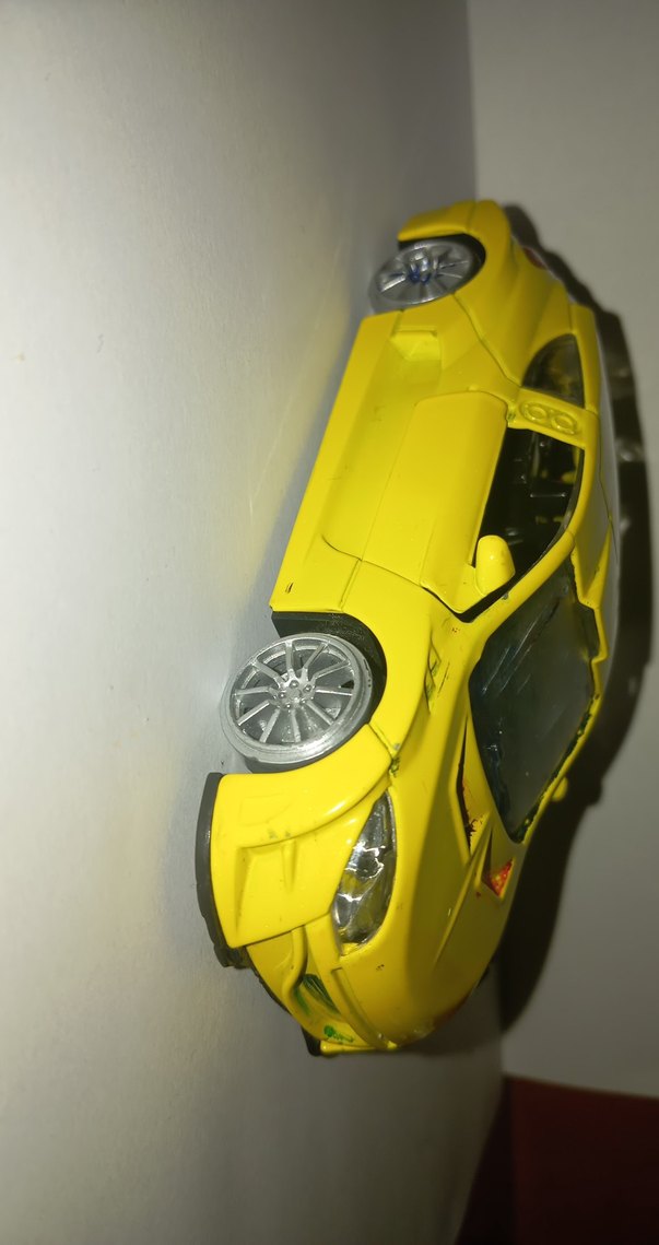 Sarı renkli oyuncak araba, detaylı tekerlekler ve gövdeye sahip. Dayanıklı malzemeden üretilmiştir.