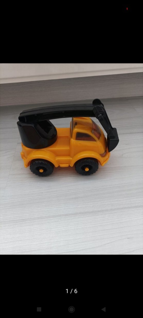 Siyah detaylara sahip renkli sarı oyuncak kepçe araba, oyun ve hayal gücü için uygundur.