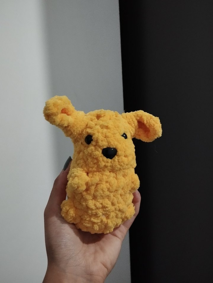 Yumuşak ve renkli sarı peluş oyuncak, sevimli hayvan tasarımlı, sarılmak için uygun. El yapımı