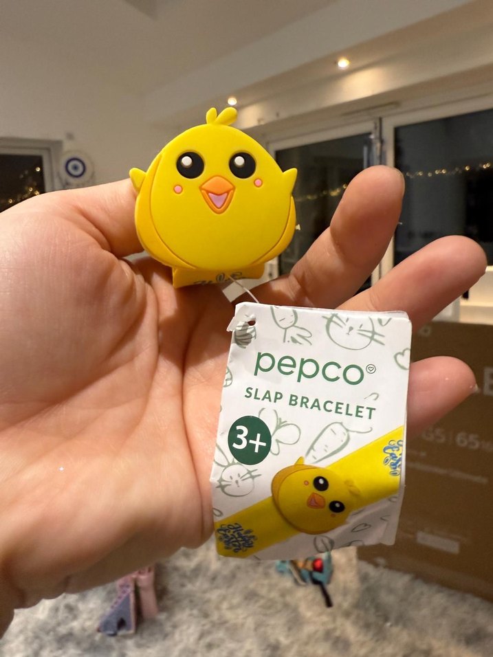 Sarı renkli Pepco slap bileklik, sevimli civciv tasarımıyla 3 yaş ve üzeri çocuklar için