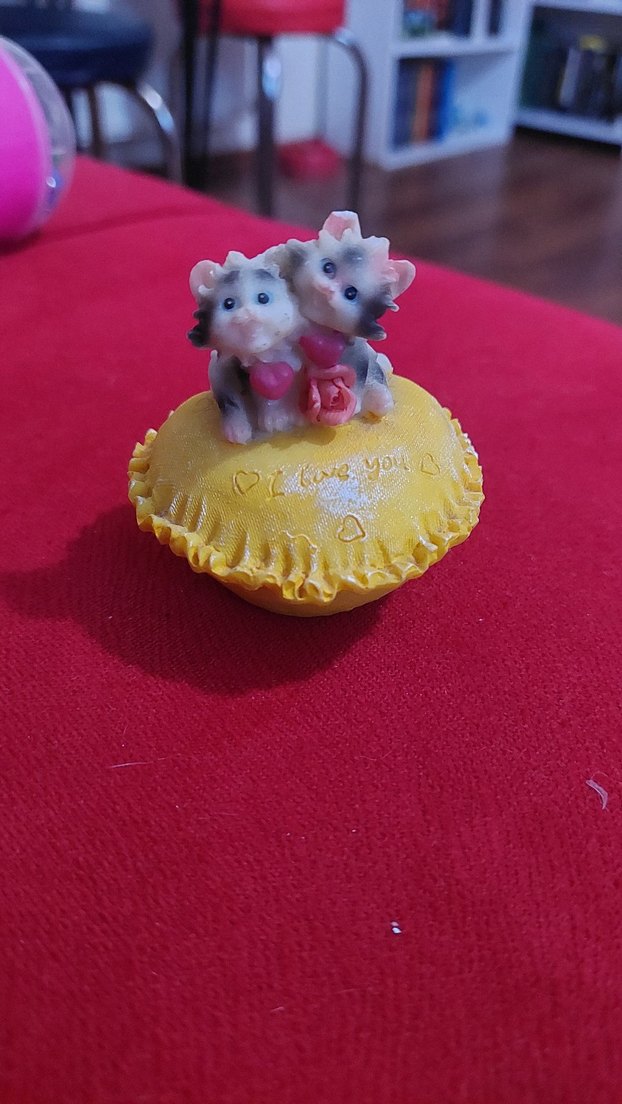 Renkli sevimli hayvan çiftinin sarı taban üzerinde olduğu, "I love you" yazılı dekoratif figürin.