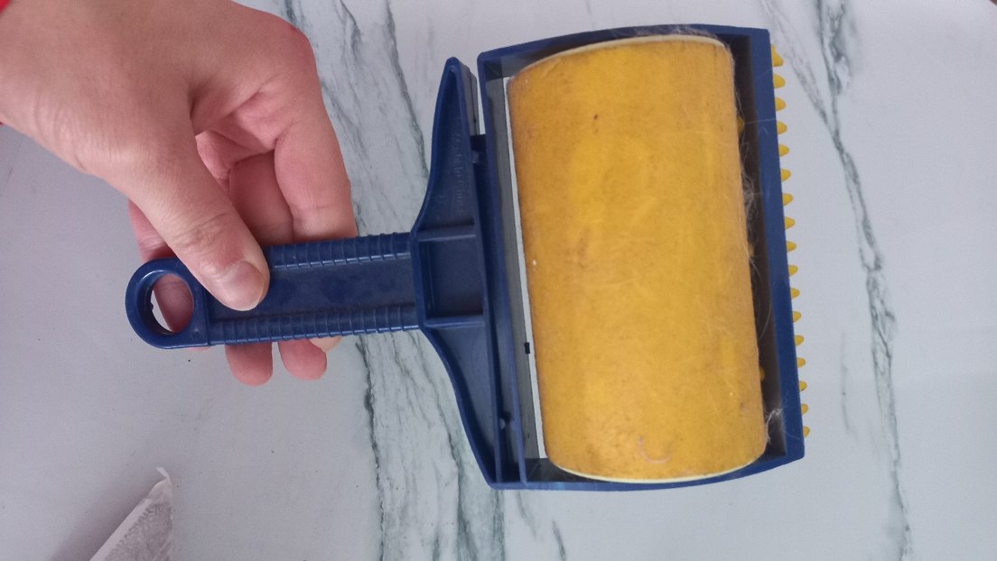 Mavi saplı, koyu sarı renkli temizlik rulosu, toz ve kirleri temizlemek için uygundur. yıkanabilir