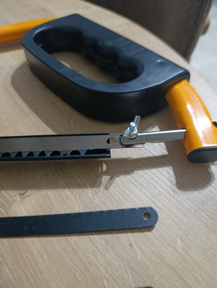 Sarı saplı, siyah tutma yerli renkli testere, değiştirilebilir bıçaklarla hassas kesim sağlar.