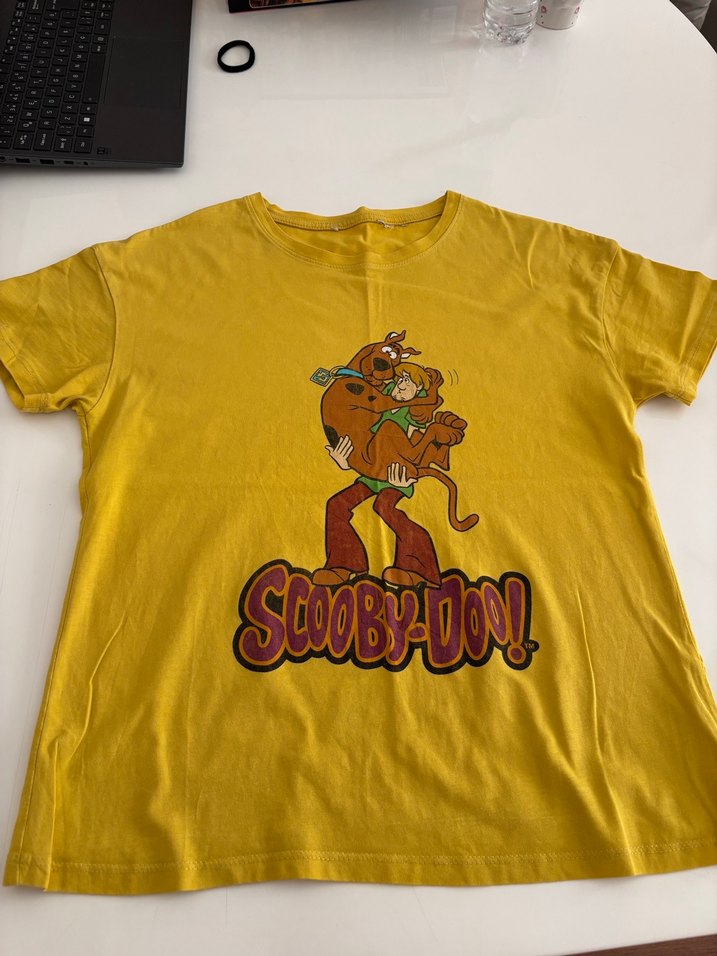 Sarı renkte, kısa kollu, yuvarlak yakalı erkek tişörtü. Yumuşak süet kumaş üzerine renkli Scooby-Doo baskısı ve düğme detayı bulunur. Rahat kesim, bohem ve retro tarzı yansıtır.