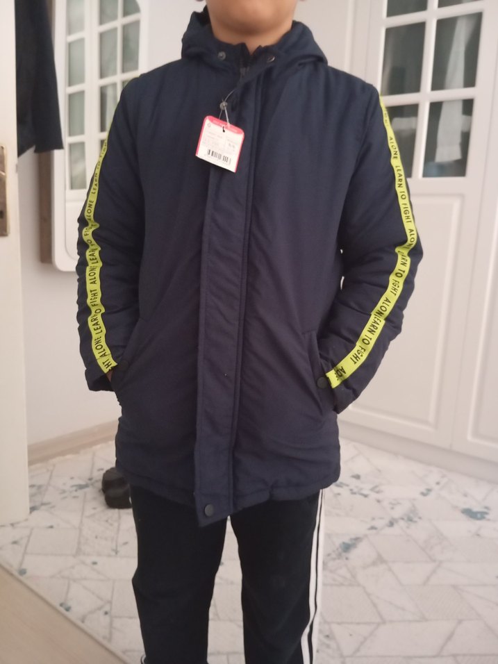 Sarı Şerit Detaylı Erkek Çocuk Mont