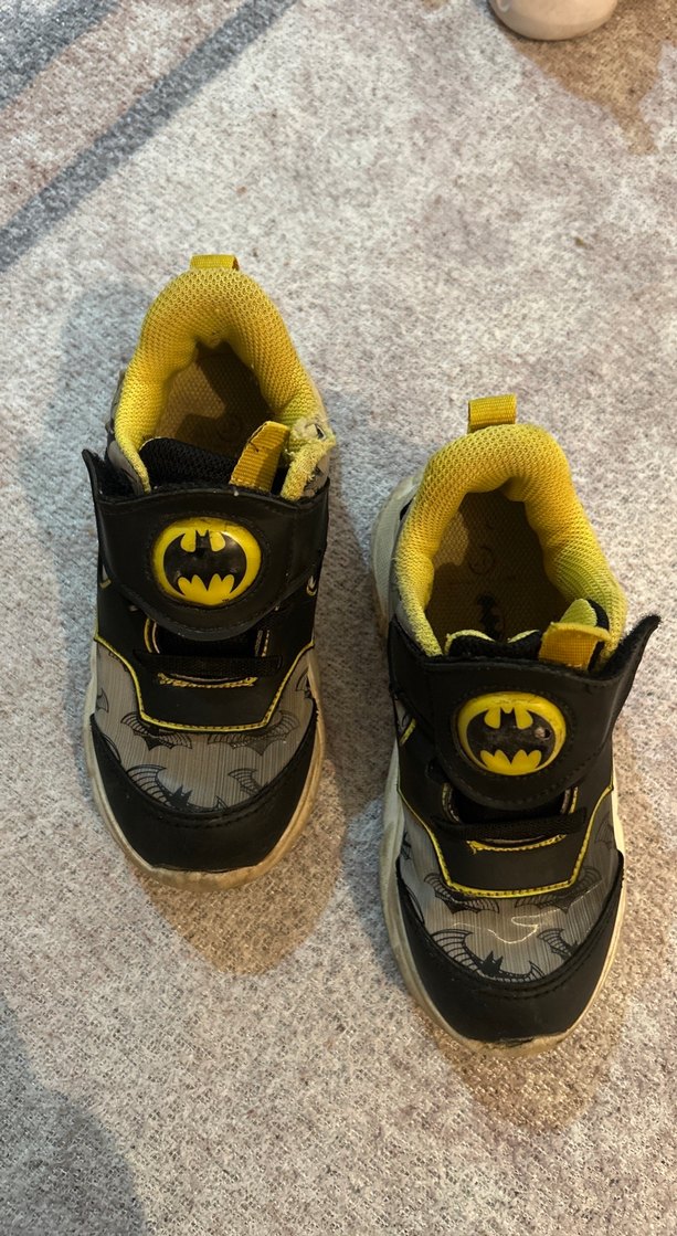 Sarı siyah renklerde, yılan desenli ve Batman logolu erkek çocuk spor ayakkabısı. Kauçuk tabanlı ve cırt cırtlı, sokak modasına uygun.kusuru var fotoğrafta belirttim bilginiz olsun