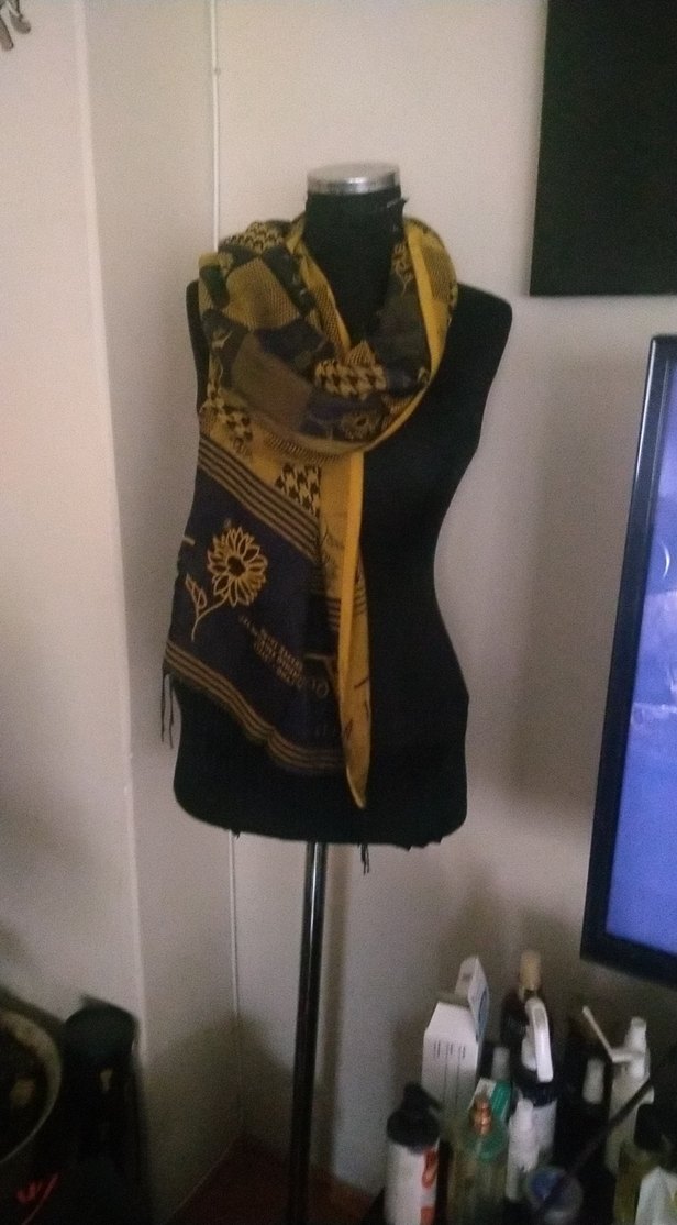 Kadın şal, sarı siyah bohem desenli ve dökümlü tasarıma sahiptir. Yumuşak tekstil malzemeden yapılmıştır, bohem ve retro tarzlara uygundur.