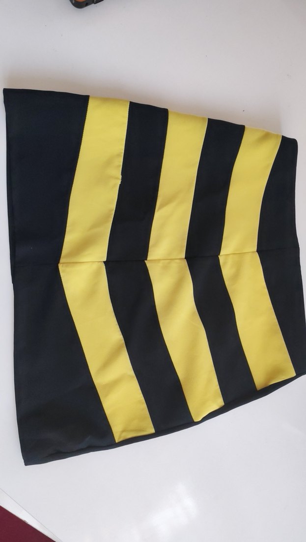 Sarı siyah çizgili, pileli erkek plaj havlusu. Spor ve streetwear tarzına uygun, midi boyda kullanışlı bir ürün. ️