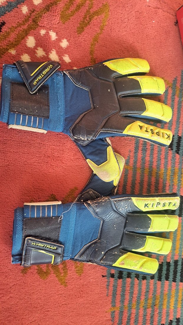 Kipsta marka, koyu sarı ve siyah desenli, bilek kayışlı erkek eldiveni, şıklık ve fonksiyonelliği bir arada sunar.