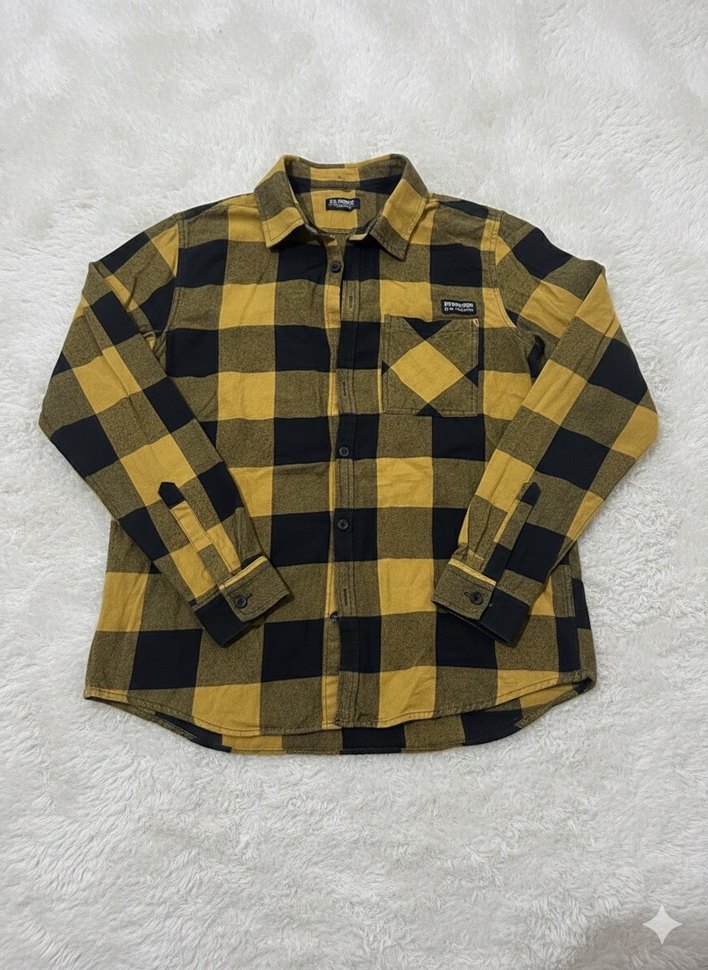 Çocuk 13-14 yaş Sarı siyah kareli, düğmeli uzun kollu gömlek. Rahat kesimi ve yakasıyla günlük sokak stiline uygun, yumuşak ve sıcak kumaştan üretilmiştir.