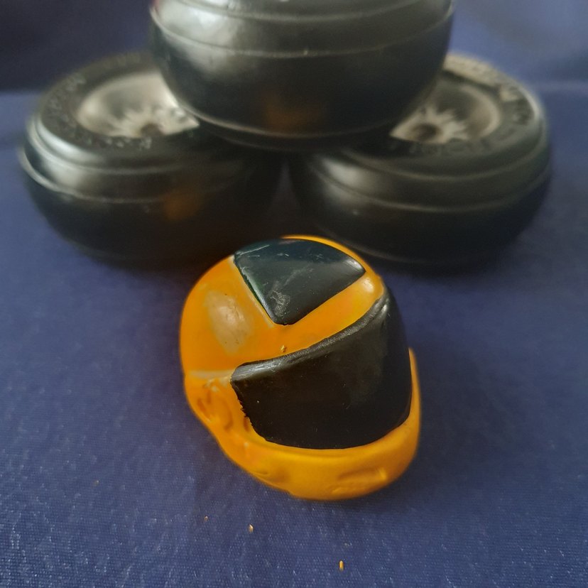 Sarı ve siyah seramik motosiklet kaskı, tokalı tasarımıyla rock punk ve grunge punk tarzını yansıtıyor. Koyu ve desensiz yüzeye sahip. ️Ürün taş işleme olup, alt kısmında vidalama somunu mevcuttur. Dekor ve süsleme içindir.