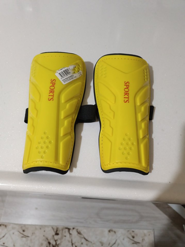 Sarı renkte, 'SPORTS' baskılı motosiklet diz koruyucu. Kauçuk malzemeden yapılmış, cırt cırtlı bantlarla sabitlenir, street wear ve athleisure tarzına uygun. ️