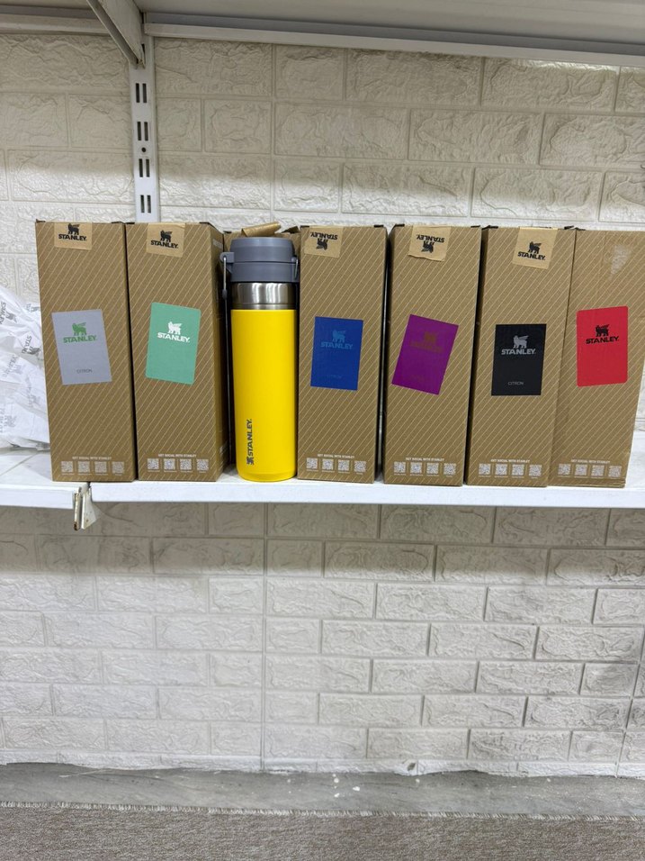Sarı renkli Stanley çocuk termos şişesi, içecekleri sıcak veya soğuk tutacak yalıtımlı yapıya sahiptir. Güvenli kapaklı ve taşınabilir tasarımlıdır.