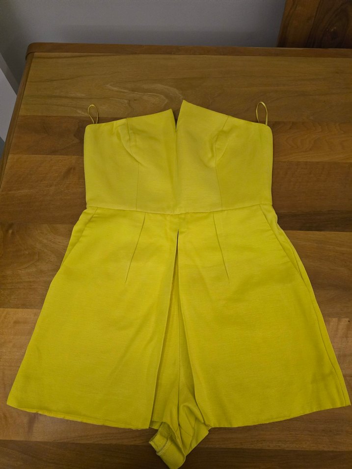Sarı Straplez Midi Kadın Tulum