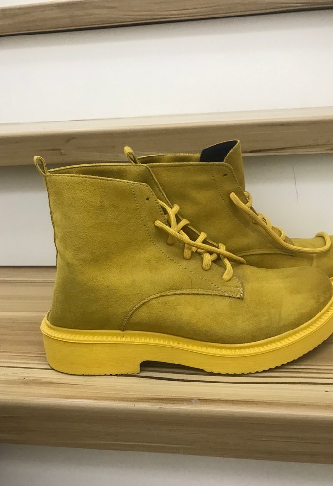 Sarı süet malzemeden üretilmiş, dolgu topuklu kadın botları. Desensiz, renkli tasarımıyla günlük kullanıma uygun, rahat ve şık. Çok rahat ve hafif süet bot. Alama hayırlı olsun