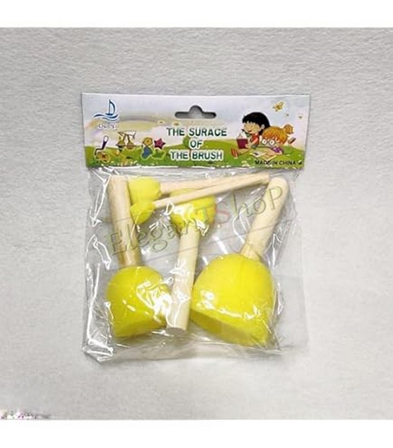 Çocuklar için ahşap saplı sarı sünger fırça seti, yaratıcı etkinliklerde kullanıma uygundur.