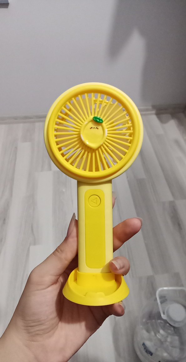 Canlı sarı renkte taşınabilir mini vantilatör, basit kontrol düğmesi ve kolay yerleştirme için stand içerir. 3 modu var.