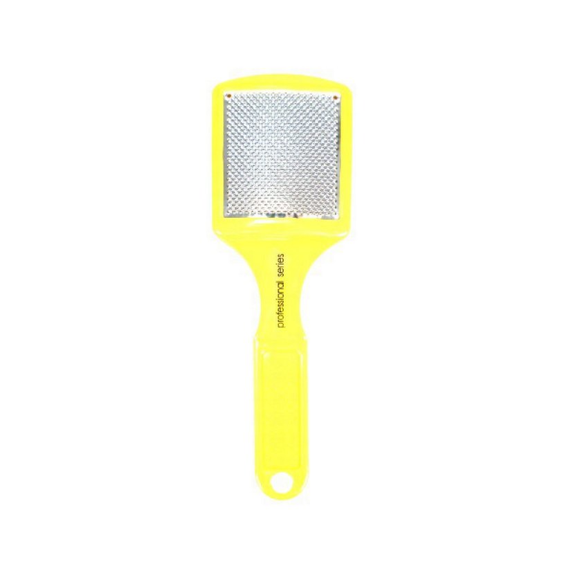 Doku metal yüzeye sahip sarı tırnak ve ayak törpüsü, pürüzsüz cilt için kullanımı kolay ve kompakt.