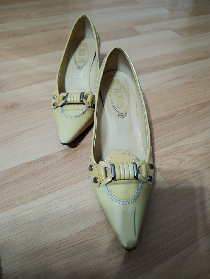 Sarı tokalı, blok topuklu ve kauçuk malzemeden üretilmiş düz ayakkabılar. Desensiz ve klasik tarzda, gündelik kullanım için uygundur. hakiki deridir çizikler var giyilmeye uygundur boyaninca giyilebilir markadir
