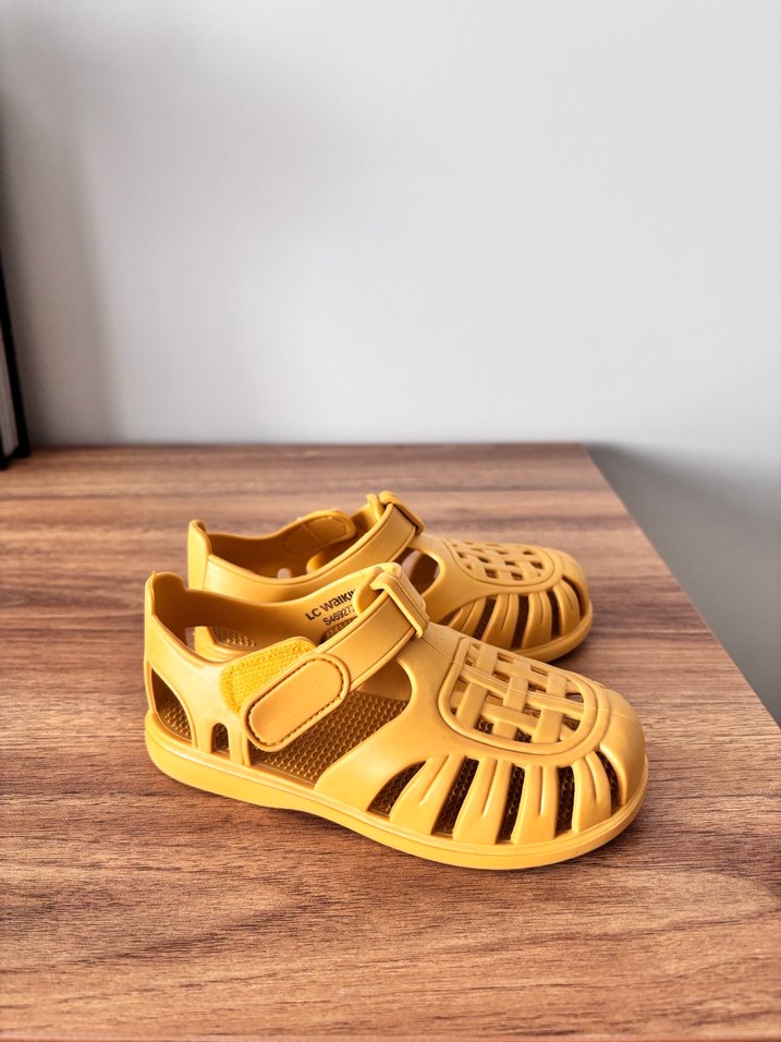 Sarı tokalı kız çocuk sandaletleri, yumuşak kauçuk malzemeden yapılmıştır. Bohem tarzda, renkli ama sade tasarıma sahiptir. Rahat ve kullanımı kolay.