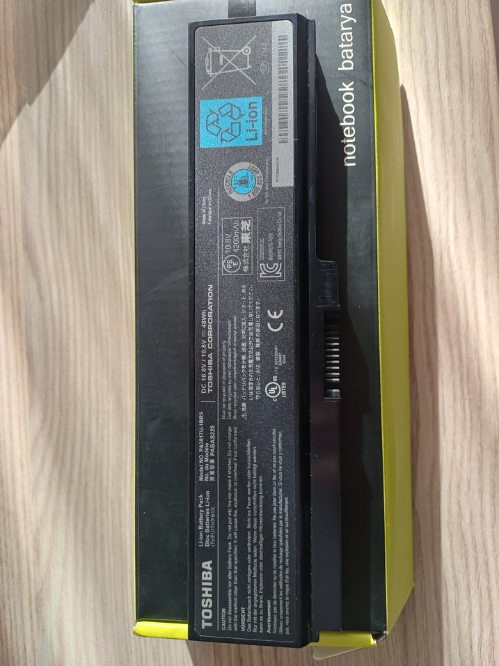 Sarı Toshiba notebook bataryası, lityum iyon teknolojisi ile laptop kullanımı için uygundur. Optik kod: 11111.