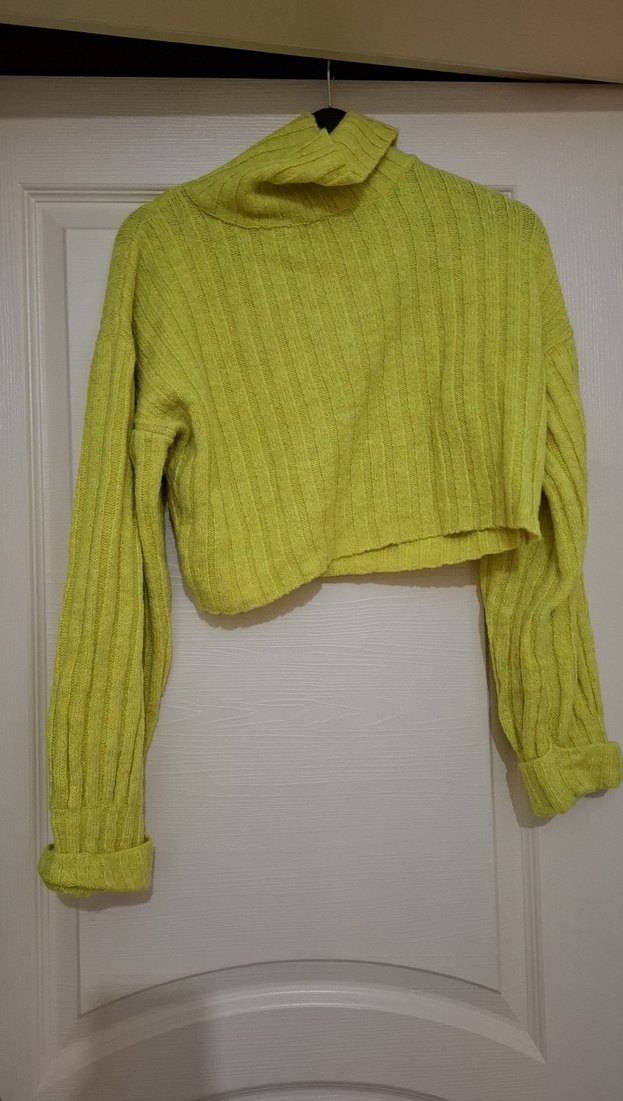 Sarı renkte, boğazlı ve uzun kollu, triko dokuma kadın kazak. Rahat kesimi ve pastel tonu günlük kullanıma uygundur. Kusuru yok standart beden
