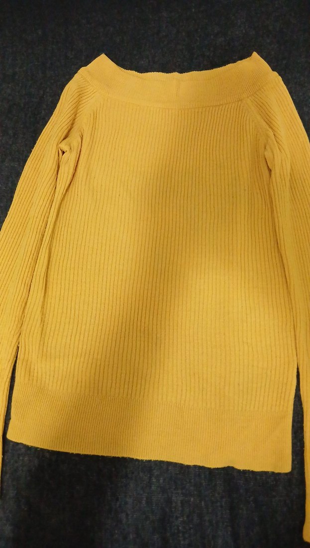 Sarı renkte, kayık yaka ve uzun kollu, yumuşak yün örme kumaştan yapılmış, vücuda oturan kadın kazağı. Normal boyda, rahat ve gündelik kullanım için uygundur.