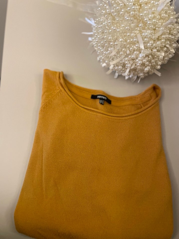 Basic tarz, uzun kol, bisiklet yakalı sarı kazak. Yumuşak ve sıcak kumaştan üretilmiştir, günlük rahat kullanım için uygundur. ✨yepyeni. Terztemiz.