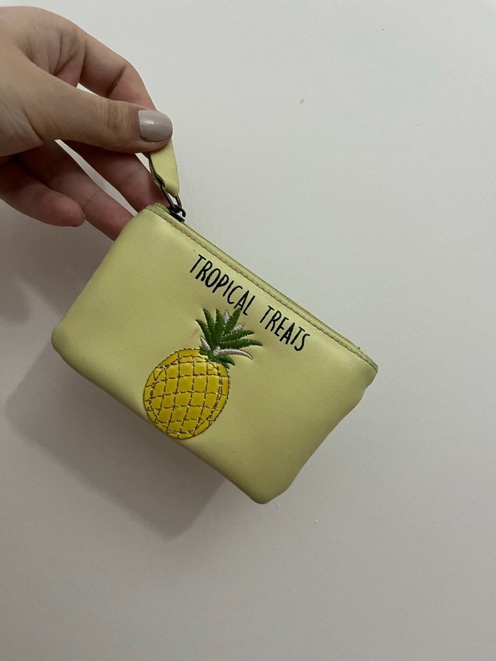 Sarı Tropikal Desenli Fermuarlı Kadın Cüzdanı