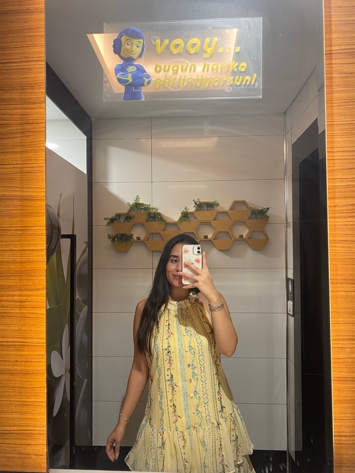 Sarı Tül Detaylı Kısa Bohem Elbise