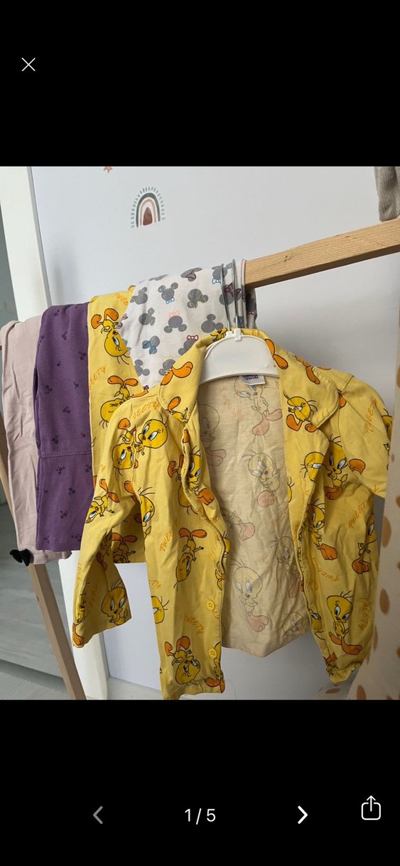 Pastel sarı renkte, Tweety desenli çocuk pijama takum Uzun kollu yanında 3 tayt hediyemdir alt üst takım pijama