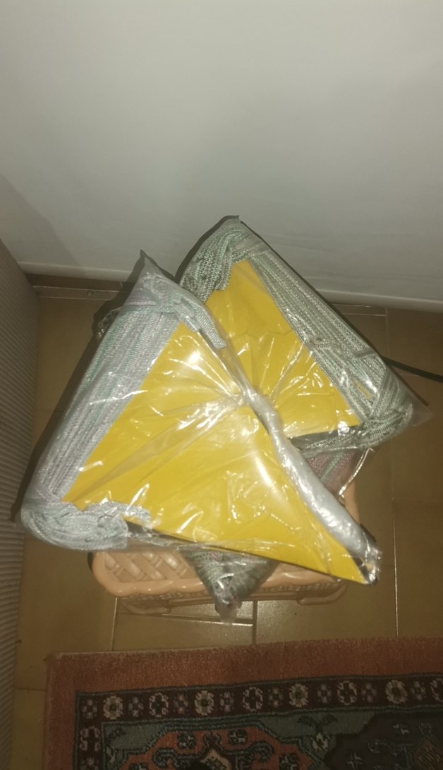 Sarı üçgen şeklinde, plastik ambalajlı parti süsü, kutlamalar için uygun.