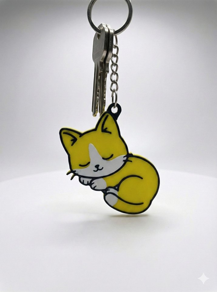 Sarı Uyuyan Kedi Figürlü Anahtarlık