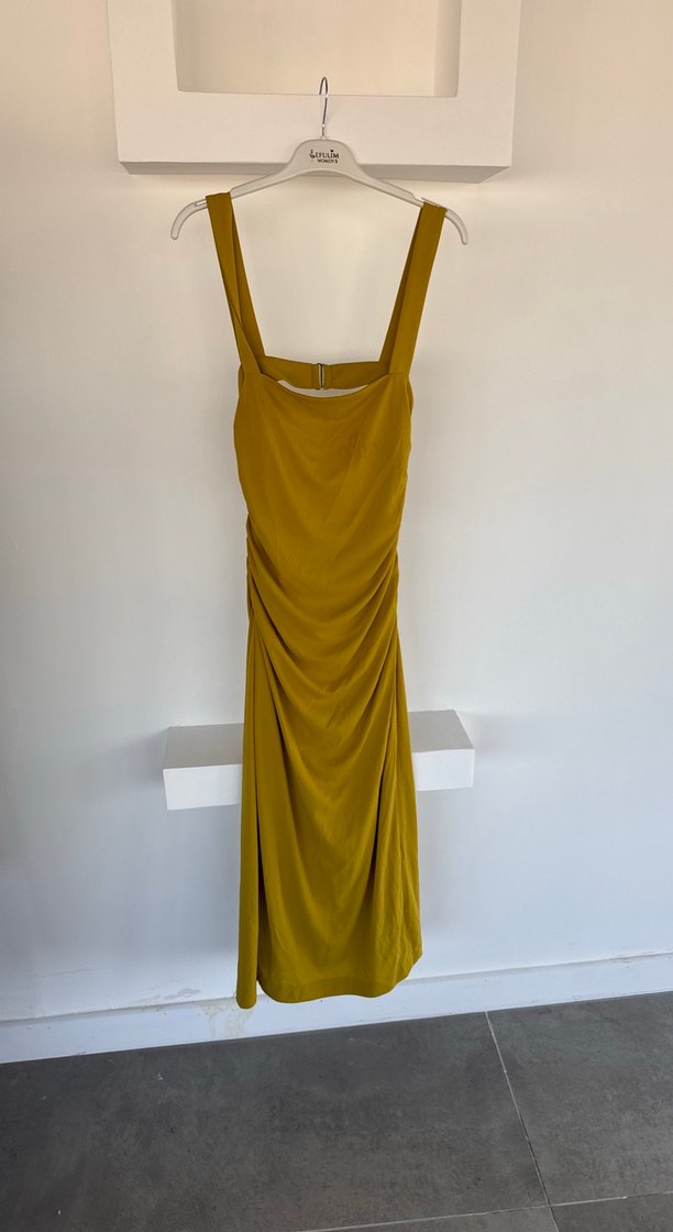 Sarı Uzun Drapeli sırt detaylı Askılı Elbise