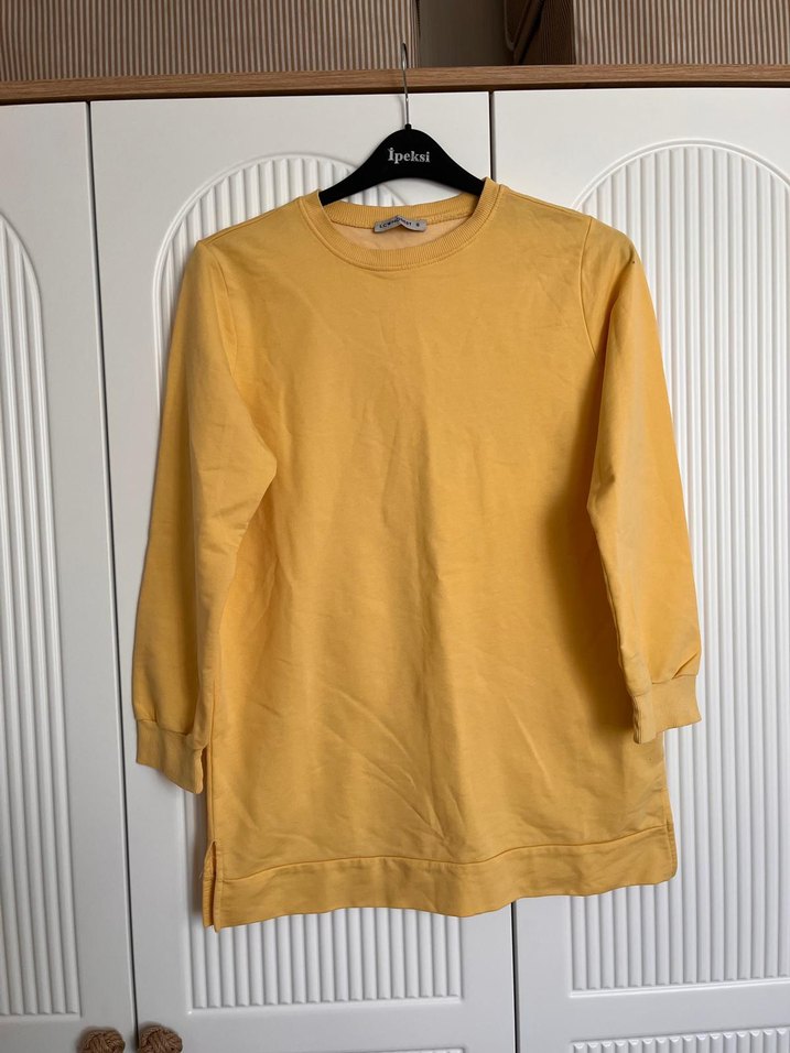 Sarı renkli, uzun kollu ve yuvarlak yakalı sweatshirt. 1-2 kere giyildi