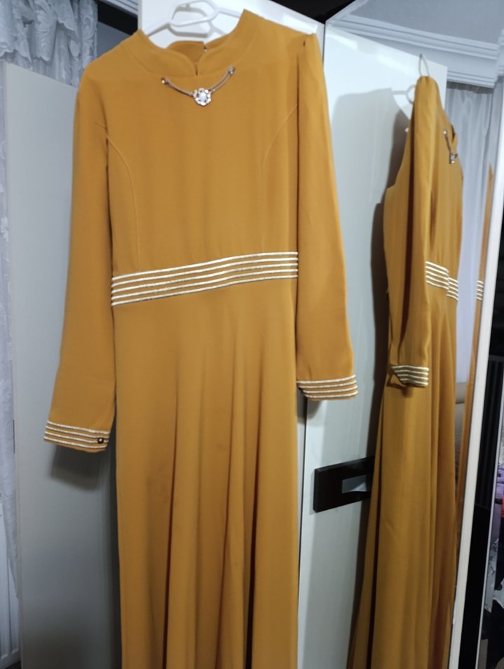 Sarı Uzun Kollu Drapeli Kadın Elbise
