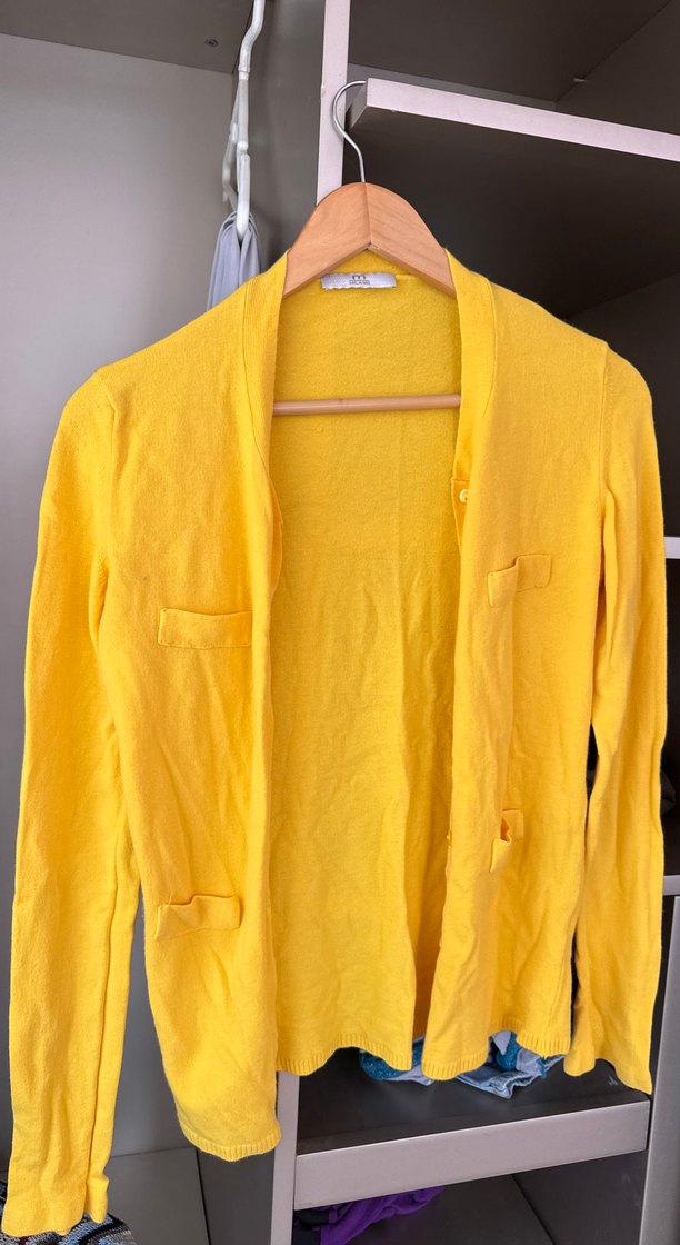 Sarı Uzun Kollu Düğmeli Kadın Hırka