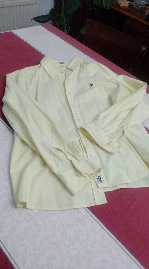 Sarı, uzun kollu pamuklu gömlek, düğmeli ve yakalı. Rahat kesimiyle günlük sokak stiline uygundur.