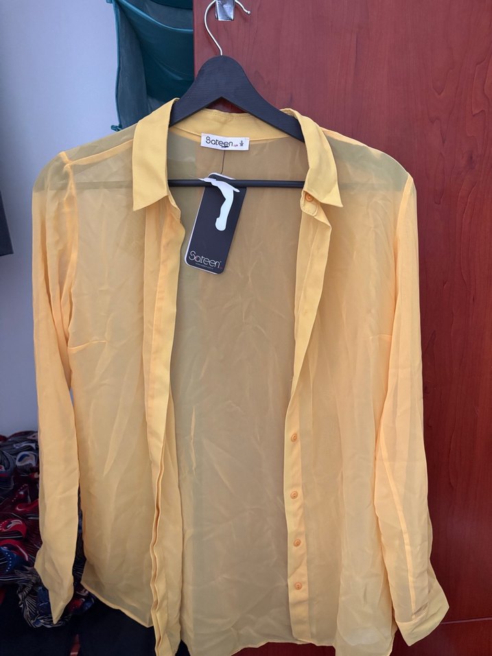 Sarı Uzun Kollu Düğmeli Salaş Gömlek