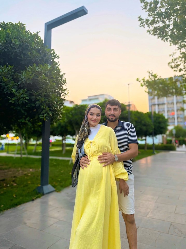 Sarı Uzun Kollu Hamile Elbisesi