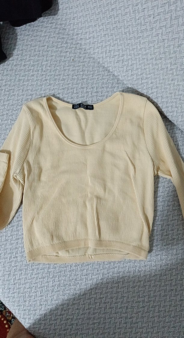 Sarı Uzun Kollu Kısa Kadın Bluz