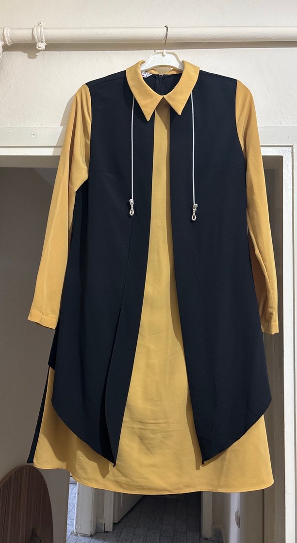 Kadınlar için uzun boy ve regular fit, drapeli tasarıma sahip tunik. Çentikli yaka ve uzun kolludur, koyu sarı renkte sentetik kumaştan üretilmiştir, günlük kullanıma uygundur.