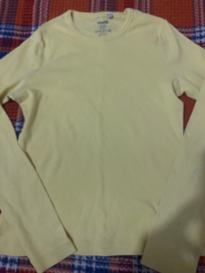 Fitted kesim, uzun kollu ve yuvarlak yakalı tişört Yumuşak pamuktan üretilmiş, sade pastel sarı renkte günlük kullanım için uygundur.