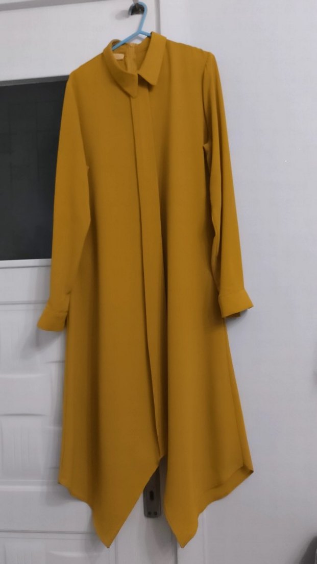 Sarı renkte, uzun kollu, salaş kesim tunik