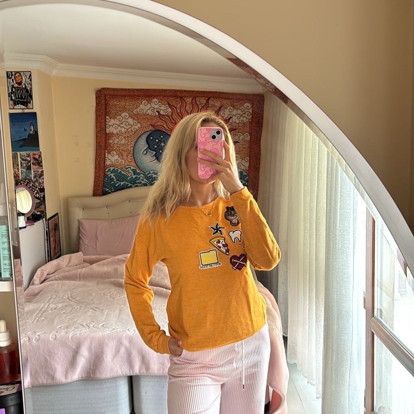 Sarı Uzun Kollu Salaş Triko Kazak