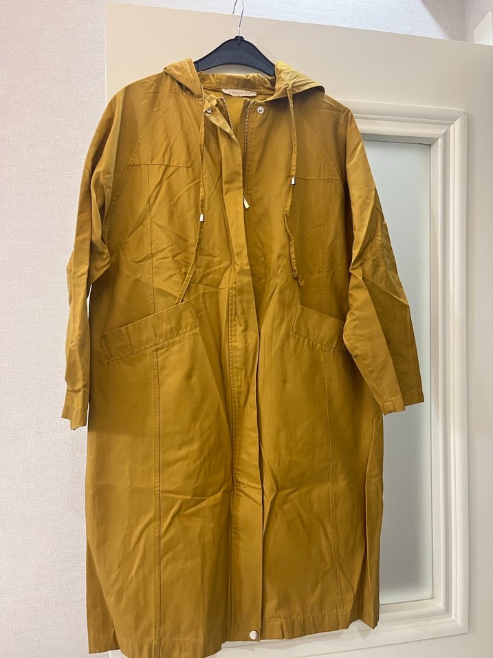 Sarı uzun yağmurluk, loose fit ve düğmeli kapama özelliğine sahip. Keten kumaştan, uzun kollu ve parlak görünümlü, gündelik sokak stiline uygun. ️