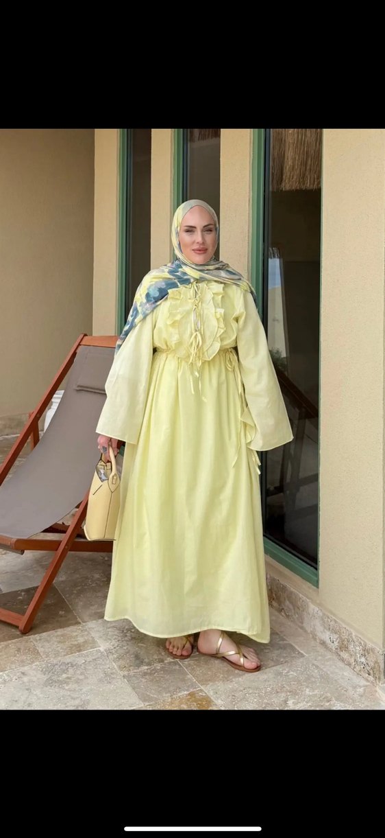 %100 pamuk astarlı sarı elbise 38/40 beden uyumlu