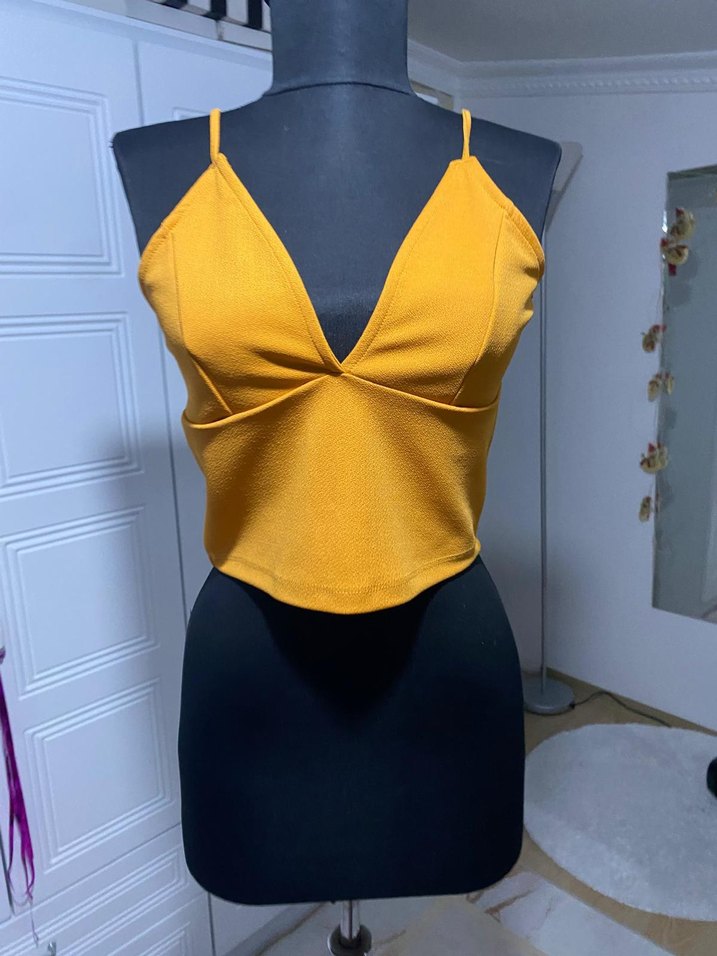 Sarı V Yaka İnce Askılı Mini büstiyer