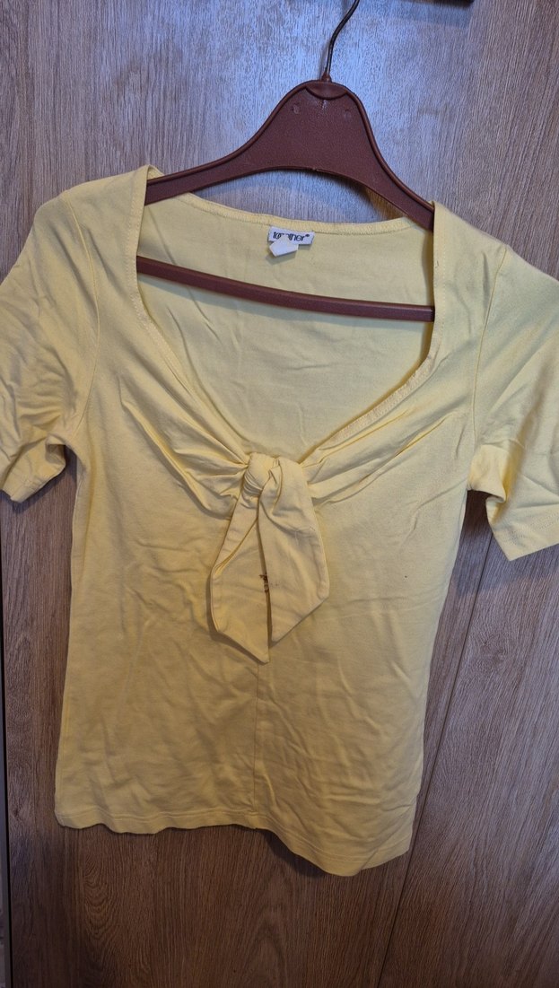 Pastel sarı renkte, ince keten kumaştan, V yaka ve kısa kollu, normal boyda, önden bağlamalı hamile bluzu. Rahat ve şık günlük kullanım için uygundur. Üzerinde bir leke var yıkanırsa çıkar.